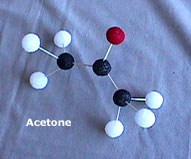 in the left shows a molecule of Acetone. White balls are Hydrogen.